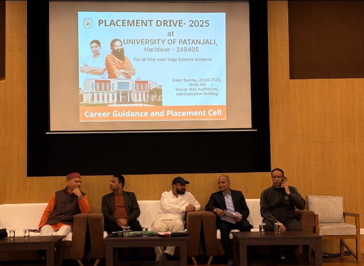 हरिद्वार: पतंजलि विवि में रविवार को प्लेसमेंट ड्राइव का आयोजन किया गया। प्लेसमेंट ड्राइव में अनंत योगलय केयर प्रा.लि.ने योग साइंस विभाग के एमएससी.,बीएससी.,बीए, पीजीडीवाईए और पीजीडीवाईएस के अंतिम वर्ष के 24छात्रों का साक्षात्कार के माध्यम से चयन किया। इस मौके पर पतंजलि विवि के प्लेसमेंट अधिकारी डा.विनय कुमार शर्मा ने कहा कि संस्थान का उद्देश्य छात्रों को गुणवत्तापूर्ण शिक्षा के साथ-साथ कैरियर के बेहतर अवसर प्रदान करना है। विवि में आयोजित प्लेसमेंट ड्राइव के माध्यम से छात्रों को अपनी प्रतिभा दिखाने का अवसर मिला और उन्हें अच्छे कैरियर विकल्प प्राप्त हुए। चयनित छात्रों ने अपनी खुशी जाहिर करते हुए संस्थान और कंपनियों का आभार व्यक्त किया।