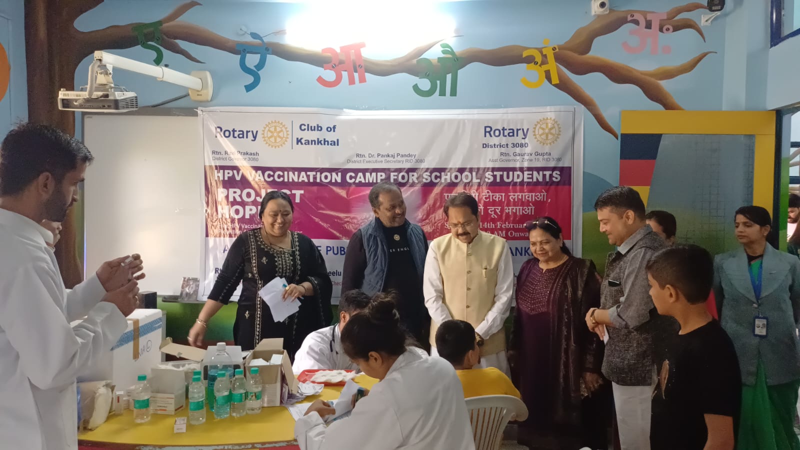 हरिद्वार: रोटरी क्लब कनखल ने अचीवर्स होम पब्लिक स्कूल, हरिद्वार में एचपीवी टीकाकरण अभियान सफलतापूर्वक संपन्न किया। इस शिविर में कुल 130 विद्यार्थियों का टीकाकरण किया गया, जो जिले का पहला ऐसा शिविर है जहाँ लड़कों को भी टीका लगाया गया।