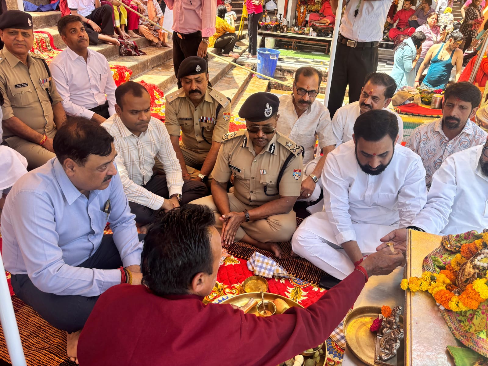 हरिद्वार: चारधाम यात्रा के शुभारंभ से एक दिन पूर्व गढ़वाल मंडलायुक्त विनय शंकर पांडे, आईजी गढ़वाल राजीव स्वरूप, जिलाधिकारी मयूर दीक्षित और एसएसपी नवनीत सिंह भुल्लर ने हर की पैड़ी पर मां गंगा की विधिवत पूजा-अर्चना कर यात्रा के निर्विघ्न, सुरक्षित और सफल संचालन की प्रार्थना की।